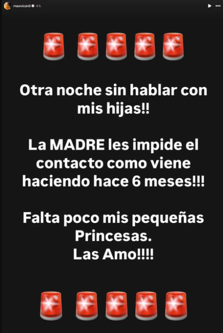 Mientras tanto, la batalla entre la empresaria y el futbolista no se detiene. Hace unas horas, Mauro publicó un fuerte mensaje contra Wanda, acusándola de impedirle hablar con sus hijas.