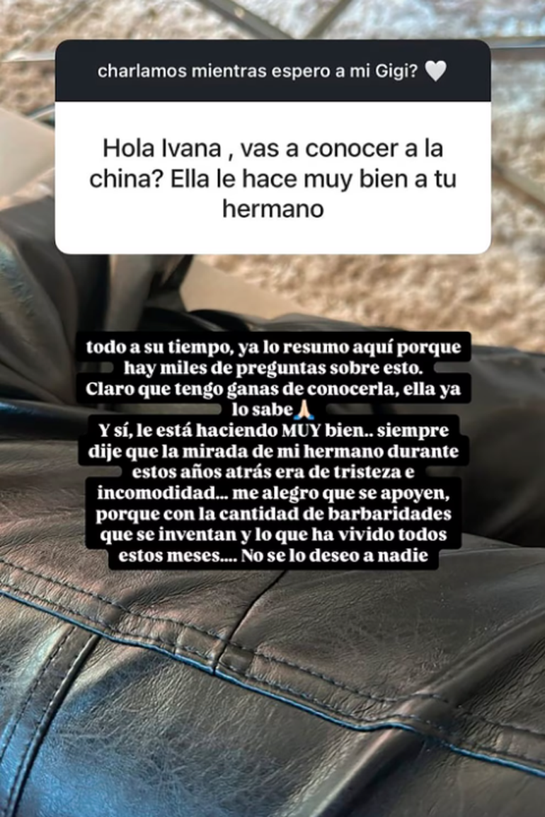 En este panorama, Ivana Icardi, conocida por su estilo directo, expresó su deseo de conocer a la China, afirmando que la actriz le hace bien a su hermano. “Todo a su tiempo. Claro que tengo ganas de conocerla, ella ya lo sabe”, comentó la ex Gran Hermano ante la pregunta de una seguidora.