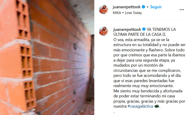 Durante los últimos meses, Juana se había guardado varios videos relacionados con la construcción por respeto a la situación personal que atravesaba. “No era momento de compartir ciertas cuestiones”, comentó. Sin embargo, ahora decidió retomar esa parte de su contenido: “Tengo compromisos con empresas y voy a seguir mostrando la casa, como lo hice desde el día cero”.