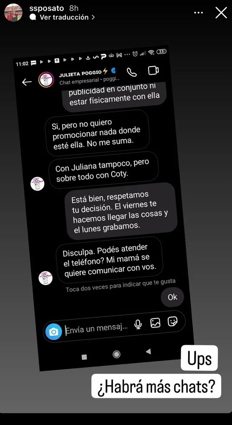 Es más, en las últimas horas publicó en su cuenta de Instagram un fuerte chat de Poggio con una marca que la quería contratar y ella señala de manera directa que "no quiero promocionar nada donde esté ella, no me suma". Además, tampoco quiere compartir cartel con Juliana Díaz, otra de sus ex compañeras de GH. Esto también habría ocurrido con estilitas y maquilladores; son al menos tres marcas por lo que informó el notero.