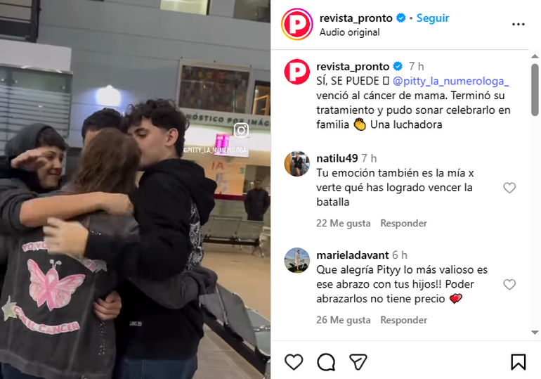 El proceso hacia la sanación fue largo y difícil pero Pitty siguió adelante con la mirada puesta en su recuperación. Y venció a la enfermedad.