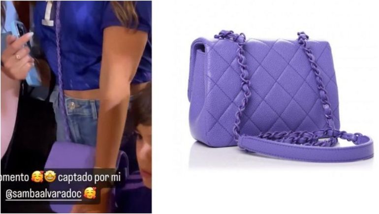 Y para combinar, a la hora de elegir una cartera, Antonela Roccuzzo eligió una del mismo color, violeta. Se trata de una cartera violeta a tono con los colores de la camiseta, llamada "Caviar Quilted Incognito Mini". Sobre el tinte de color violeta, en realidad podemos llamar "Very Peri", y está catalogado por Pantone como el color del 2002. A pesar de ser considerado un tono arriesgado los expertos aseguran que es muy fácil de combinar, ya que va bien con negros, blancos e incluso marrones. También es un color que se adapta a todas las épocas del año.
