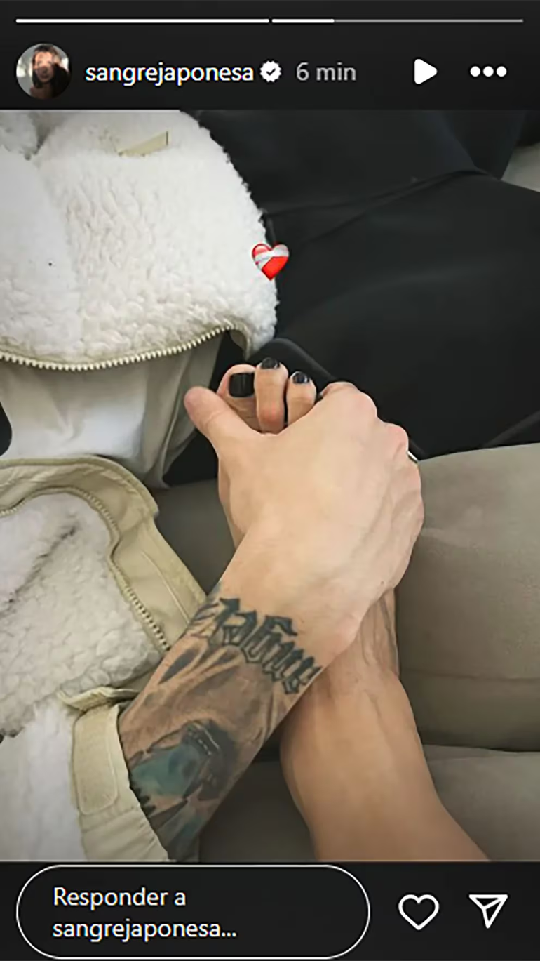 Tan solo unas horas más tarde, la actriz compartió una postal donde se pudo observar su pie derecho sostenido por una mano repleta de tatuajes. Si bien dejó anonadado a más de uno, lo cierto es que esos diseños son los mismos que tiene el artista Lauty Gram, cuyo nombre real es Lautaro González Cadicamo.