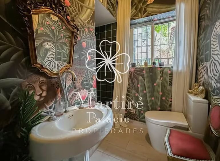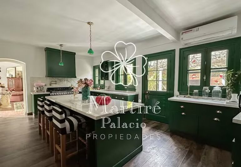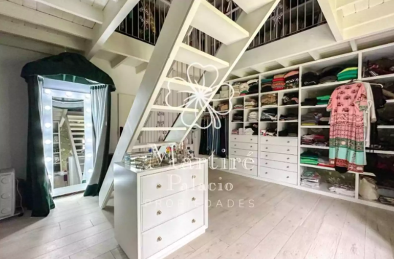 También cuenta con lavadero, cuatro dormitorios y un cuarto de húespedes en suite, cuatro baños y un entrepiso ambientado como sala de cine.