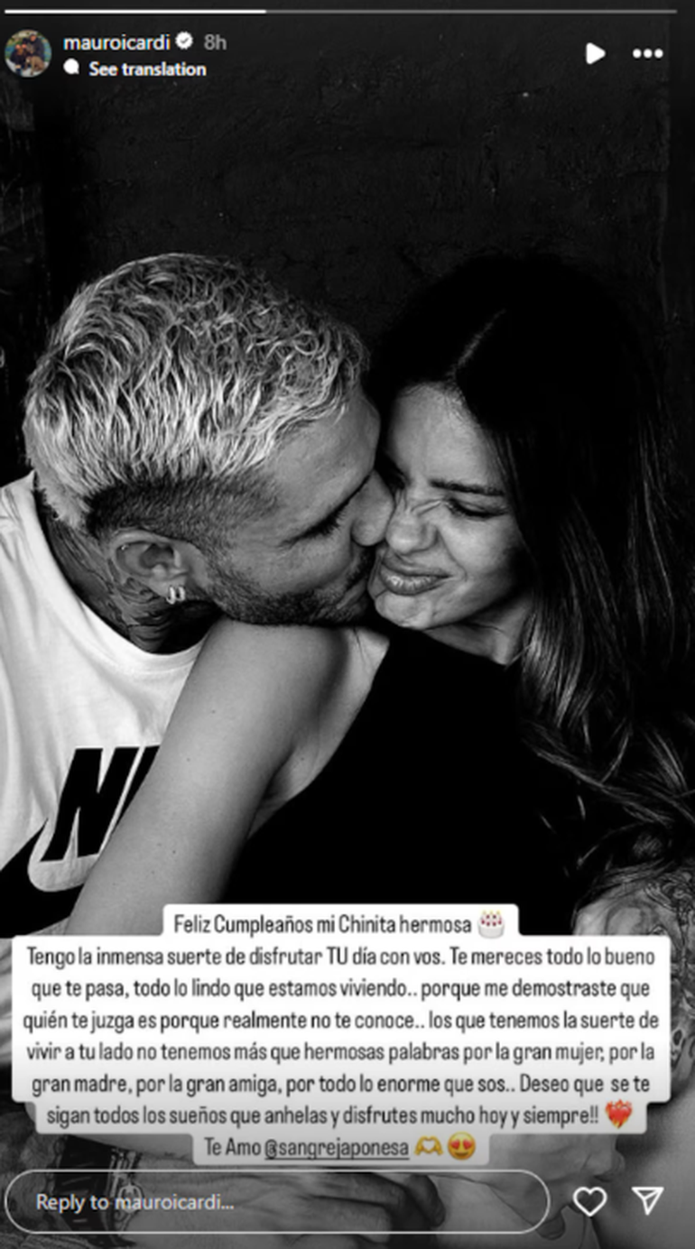 “Feliz cumpleaños, mi chinita hermosa. Tengo la inmensa suerte de disfrutar tu día con vos. Te merecés todo lo bueno que te pasa, todo lo lindo que estamos viviendo”, comenzó Icardi, expresando su amor. Sin embargo, segundos después, sumó: “Me demostraste que quien te juzga es porque realmente no te conoce”.