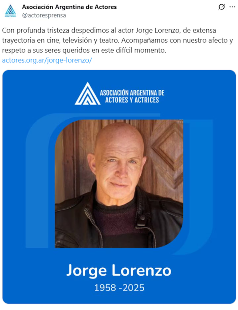 Jorge Daniel Lorenzo había nacido el 23 de diciembre de 1958 y formaba parte del sindicato desde hacía muchos años. Según lo que indicó la información de la Asociación Argentina de Actores, tenía una activa participación en las movilizaciones en favor de la cultura y los derechos. La organización citó parte de los trabajos en los que estuvo Lorenzo. En televisión y plataformas digitales, formó parte de producciones muy populares como El marginal, En el barro y ATAV 2, consolidando una extensa trayectoria previa.
