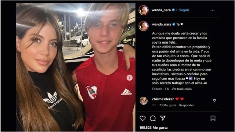 “Aunque me duela verte crecer y los cambios que provocan en la familia, soy la más feliz. Es tan difícil encontrar un propósito y una pasión del alma en la vida. Y vos de tan chiquito la tenés”, escribió en sus redes sociales Wanda Nara.
