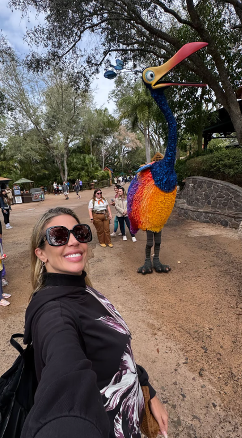 Una de las primeras paradas que hicieron fue en la tierra de Avatar, donde grabó un video de la ambientación del lugar, con las piedras que cuelgan en el cielo, las plantas características de la película e incluso fue un paso más allá y grabó dentro de una de las atracciones. Para cerrar este minuto a minuto de su día, compartió una selfie junto al pájaro de Up: una aventura en altura, que camina por las calles del parque.