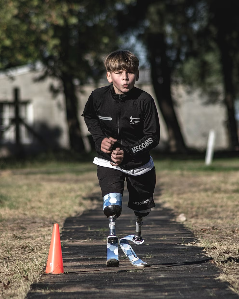 Ian nació con agenesia, una condición que implica la ausencia congénita de ambos miembros inferiores, pero desde sus primeras palabras y pasos supo que su vida estaría marcada por la fuerza, la pasión y una tenacidad fuera de lo común. Desde los diez meses, utiliza prótesis adaptadas: algunas pensadas para las rutinas diarias, otras especialmente diseñadas para hacer actividades físicas. Ama el fútbol y además práctica atletismo.