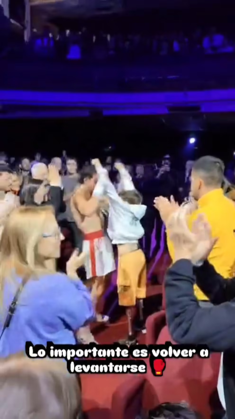 Nico Vázquez se acercó, miró a Ian y, sin dudarlo, lo tomó del brazo. Lo invitó a acompañarlo en ese trayecto, y, acto seguido, lo levantó en brazos. Juntos, avanzaron por el pasillo ante una sala colmada de emociones. En esa secuencia, el joven Ian, con su prótesis en evidencia, levanta el puño al aire mientras la multitud explotaba en aplausos. “Lo importante es volver a levantarse”, dice la leyenda que acompaña la imagen, convertida en testimonio de la superación cotidiana.