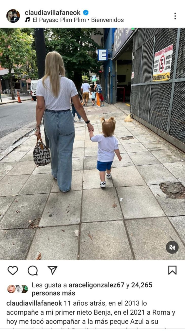 La foto que posteó Claudia enterneció a todos sus seguidores y dejó a la vista cuánto le apasiona ser abuela, ya que Azul se veía muy tranquila caminando agarrada de su mano, lo que da a entender que no solo disfruta pasar el tiempo con su abuela, sino que es una actividad que repiten con frecuencia.