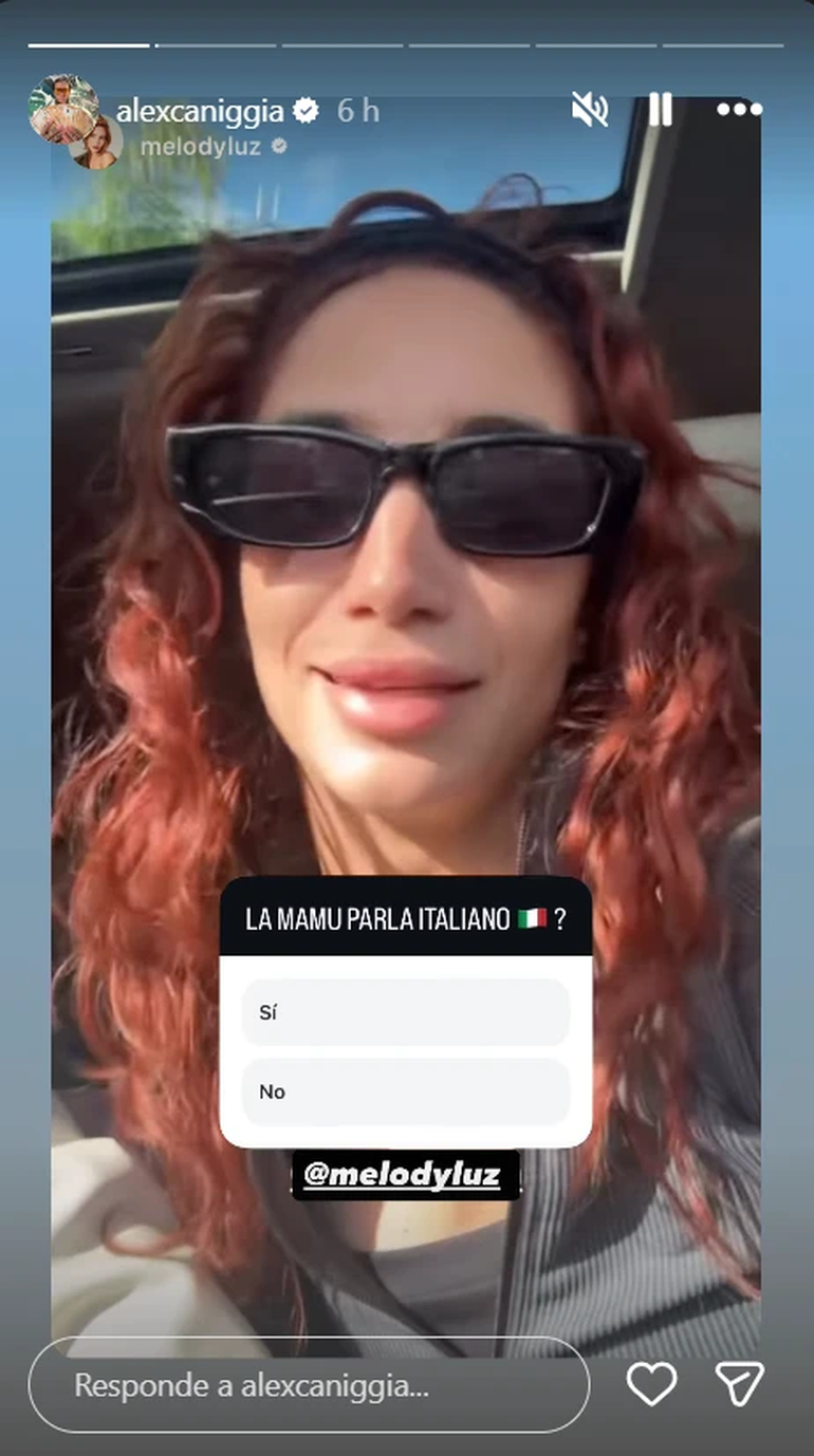 Alex Caniggia y Melody Luz volvieron a protagonizar un divertido momento en redes sociales, que esta vez incluyó palabras en italiano, bromas sobre la convivencia y un deseo de agrandar la familia. En un video grabado mientras viajaban en auto, la pareja dejó ver una situación cotidiana cargada de humor, pero que también reveló los planes a futuro del mediático.