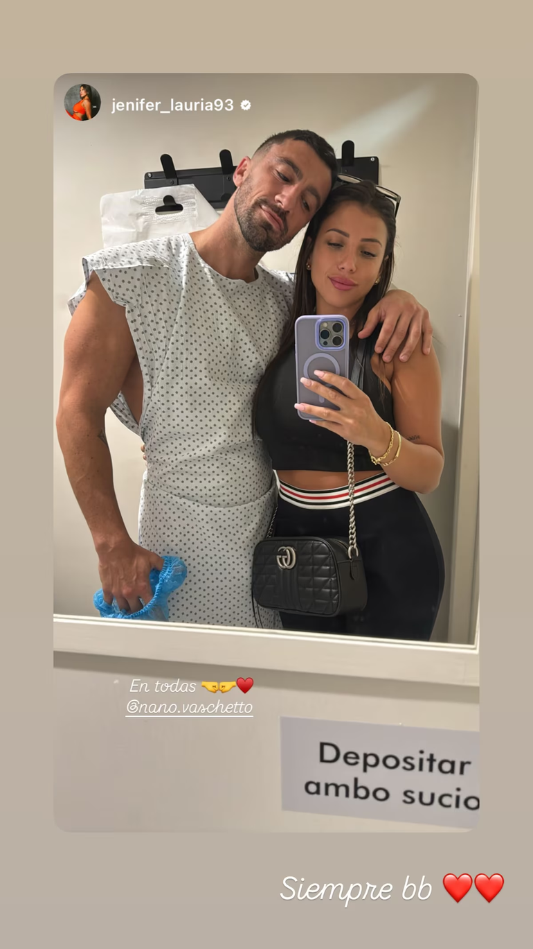 Más tarde, desde el centro médico, publicó una imagen en la que se los veía juntos antes del ingreso al quirófano, acompañada por el mensaje: “En todas”.