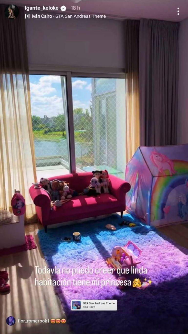 Tamara Báez, a través de las redes sociales, no dudó en expresar su emoción por este espacio y los detalles que pensó papá L-Gante. “Tu felicidad es la mía, te felicito por tu habitación y hogar nuevo mamita”.