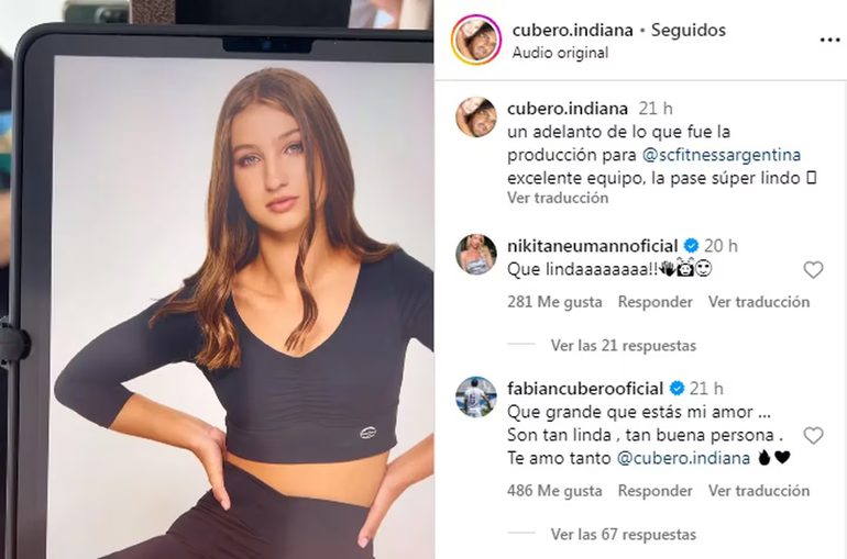 Entre los comentarios que cosechó la publicación de Instagram de Indiana, se destacó el de Nicole Neumann que escribió: “¡¡Qué lindaaaaaaaa!!”. Por su parte, el ex futbolista dedicó un corto pero tierno mensaje a su hija: “Qué grande que estás, mi amor. Sos tan linda y tan buena persona, te amo tanto.” En el comentario de su padre, ella respondió tímidamente: “Te amo, pa”.