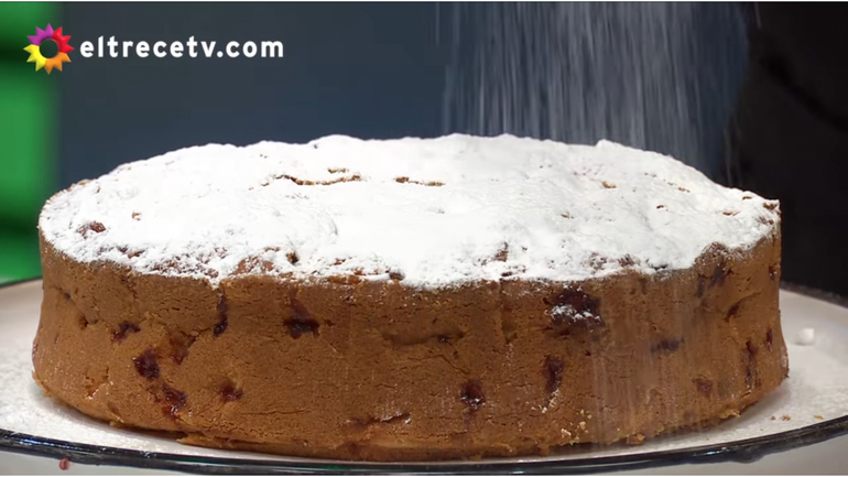 - Chequeá la cocción de la torta al hundir un palillo largo y retirala del horno, cuando haya perdido el calor espolvoreá azúcar impalpable y cortá