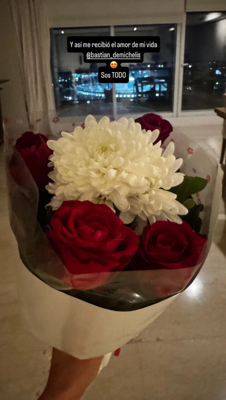La decisión del mayor de sus hijos fue tomada en torno a cuestiones escolares y sus compromisos deportivos en las inferiores de River Plate. Para sorpresa de Eva, Bastián decidió esperarla con un ramo de flores compuesto por rosas rojas y crisantemos blancos, colores preferidos de la familia Demichelis.