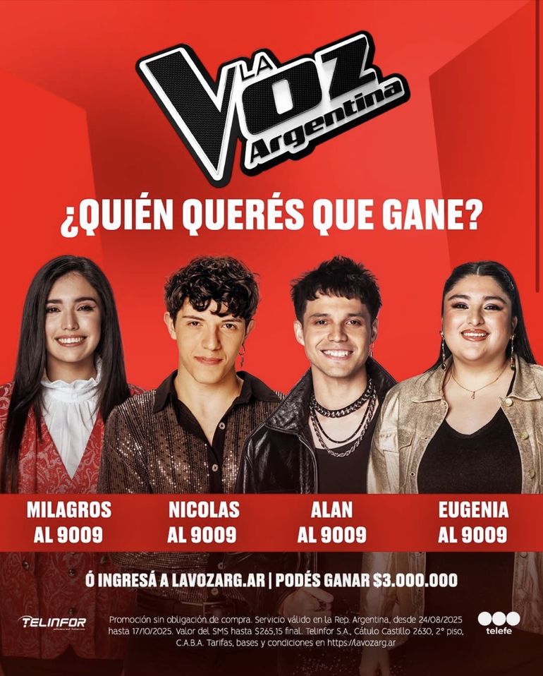 Este miércoles se conocieron los cuatro nombres que estarán en la final de La Voz Argentina. Quién ganará el reality éxito de Telefe.