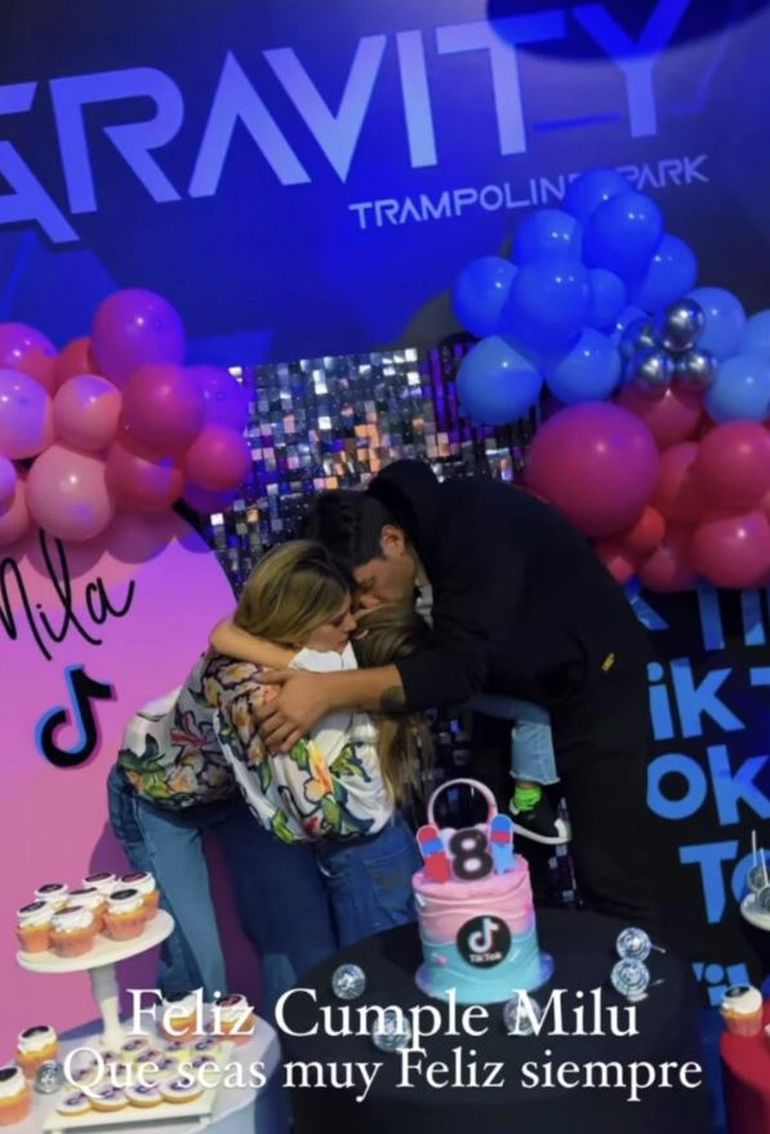 La modelo y el dj se divirtieron como dos chicos más en el salón de eventos donde realizaron el festejo de la pequeña. Se trata de un parque de trampolines ubicado en Montevideo que es furor entre los niños.