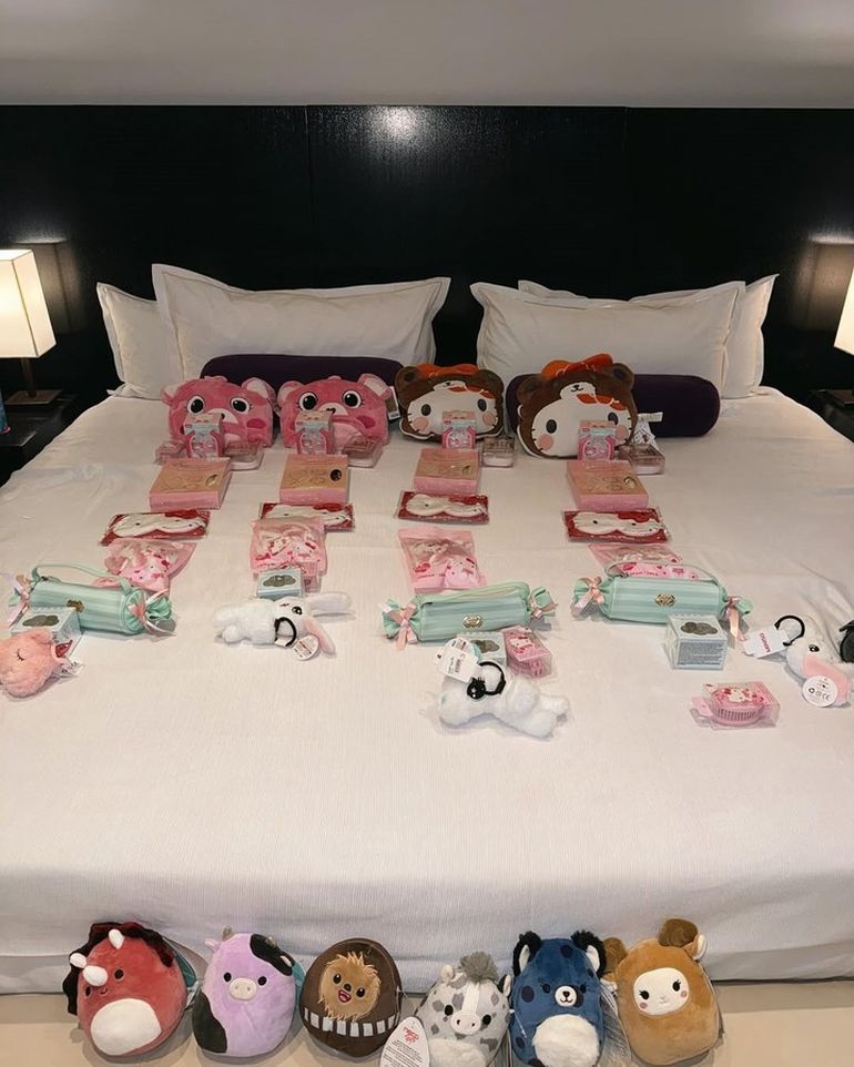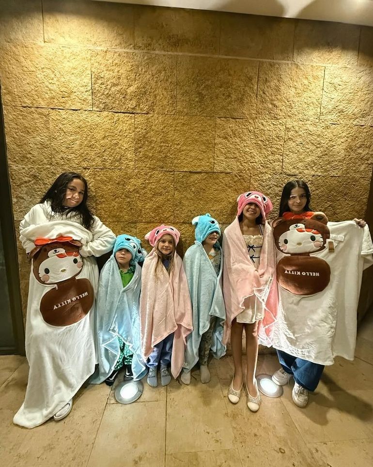 Con el objetivo de que vivan la experiencia de la mejor forma posible, Eugenia sorprendió a su hija, y a sus invitados con kits temáticos de Hello Kitty, que incluyeron batas, peluches y accesorios como cepillos para el pelo.