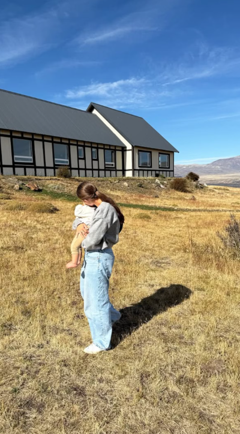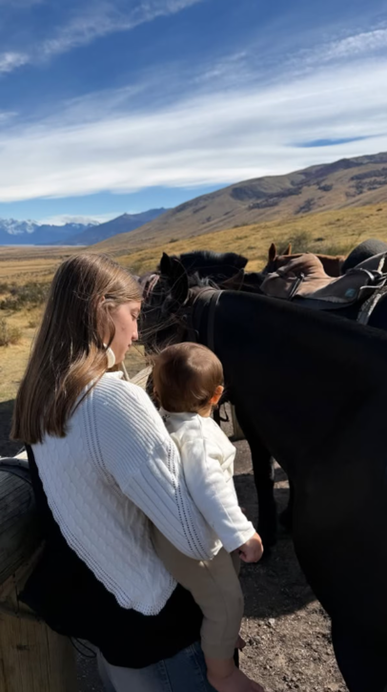 Además, la familia disfrutó de diversas actividades al aire libre, como caminatas por los senderos y paseos a caballo. En una de las fotos más tiernas, se puede ver a su hija mayor, Indiana, quien se encuentra sosteniendo a su hermano, Cruz, en sus brazos mientras la modelo observa a los caballos, que están listos para la actividad. La calma y la serenidad de la escena se reflejan en la expresión de ambos, mientras el paisaje de la Patagonia, con sus enormes montañas y pastizales, completa el cuadro de la imagen.