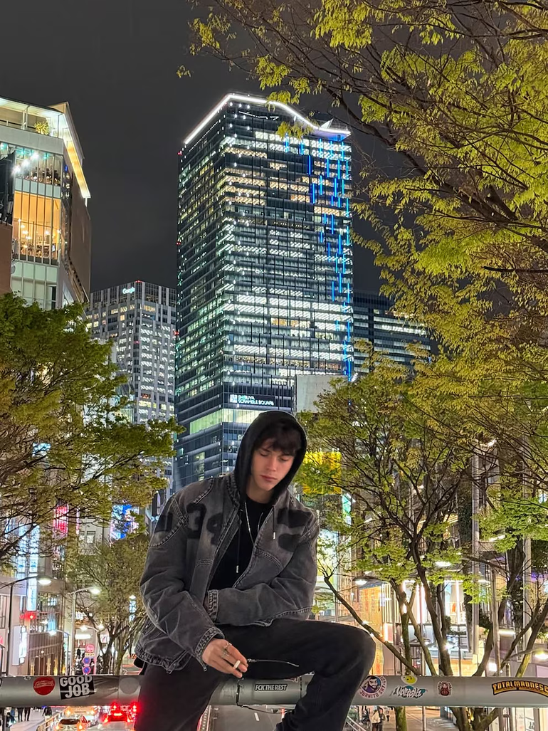 En otro de sus paseos nocturnos, Felipe Fort recorrió el famoso barrio de Shibuya, conocido por el paso de peatones con más tránsito del mundo: el cruce de Shibuya. Se calcula que más de 3.000 personas recorren dicha esquina cada vez que el semáforo da paso a los transeúntes. Así las cosas, el hijo de Ricardo Fort se filmó caminando por el lugar junto a sus amigos mientras lucía un jean, una campera de cuero marrón y un gorro estilo ushanka.