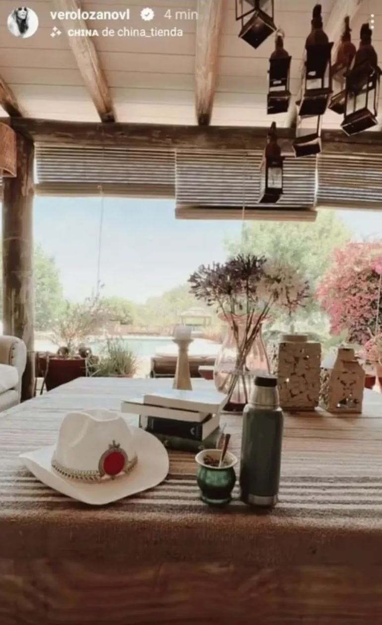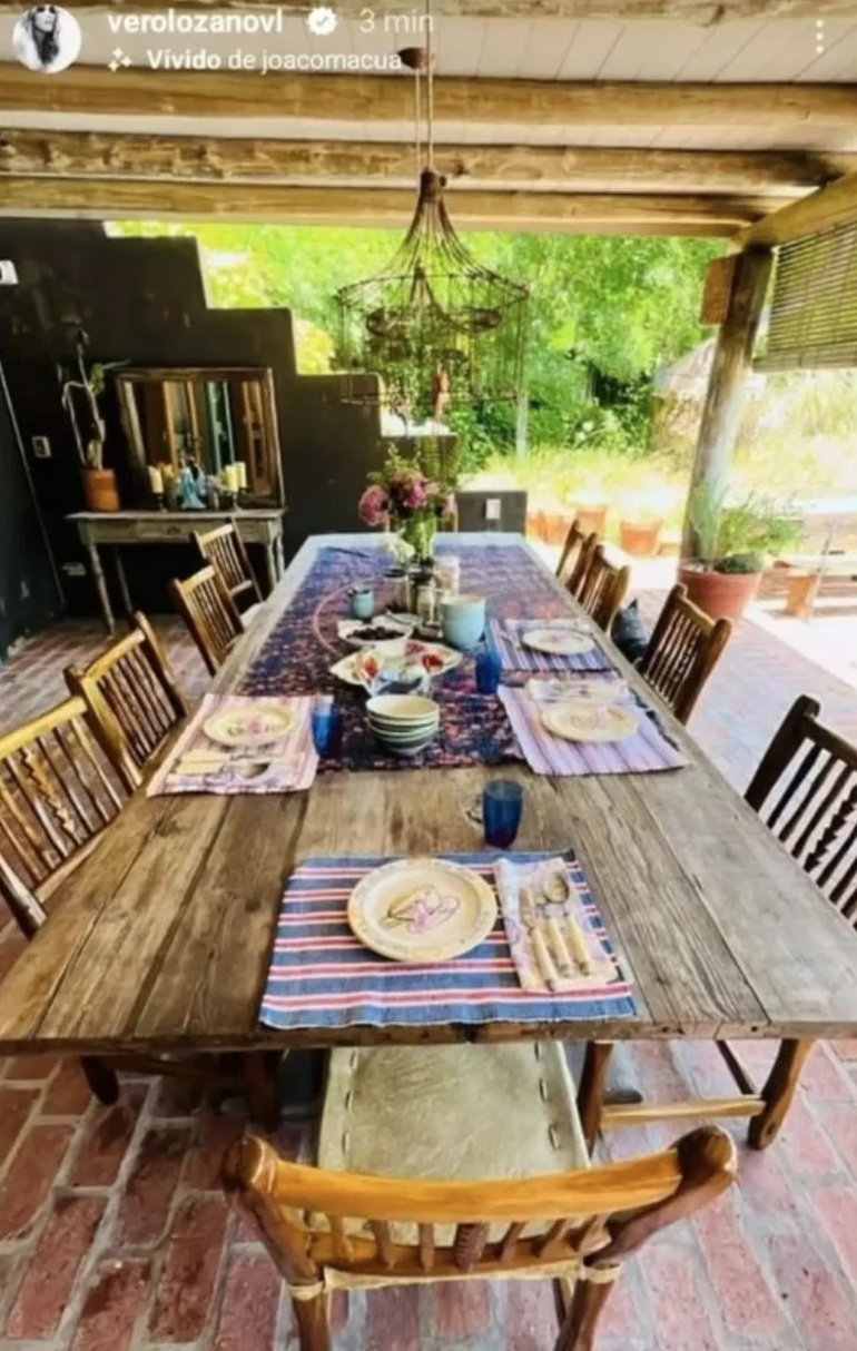 Ahora, por primera vez, Vero mostró en detalle cómo es el inmenso jardín que decora su soñada casa, a la que apodó Yellow Rosem. Entre la vivienda y el jardín, podemos ver una galería techada pero abierta, que cuenta con una mesa baja, sillones blancos, cortinas que se pueden subir o bajar según el clima y todo tipo de objetos decorativos estilo boho chic.
