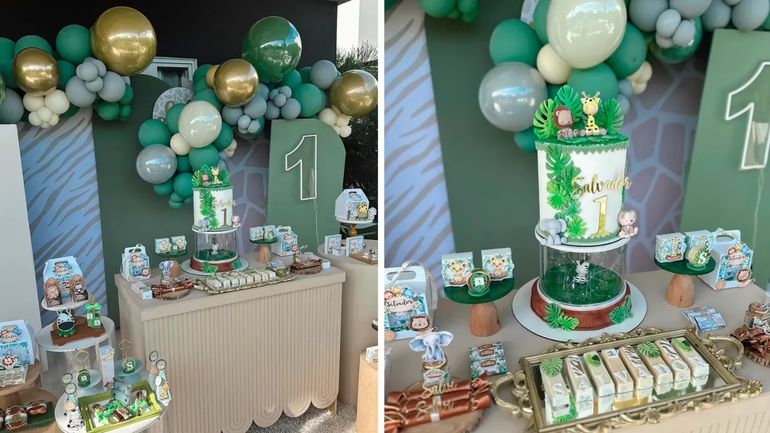 La celebración fue todo un espectáculo, ambientada con el tema de animales de la selva. Detalles cuidadosamente coordinados, desde el candy bar hasta la torta, siguieron la misma temática. Los más pequeños disfrutaron de una plaza blanda y un pelotero, mientras que los invitados degustaron pizzas y empanadas. Además, se llevaron de recuerdo unos difusores personalizados con el nombre del cumpleañero.