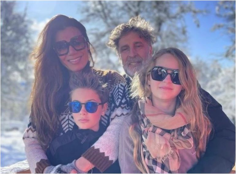 En las fotos se puede ver a sus hijos a punto de practicar snowboard, pero también a los cuatro sonriendo mientras disfrutan de los hermosos parajes de este paraíso ubicado en Neuquén.