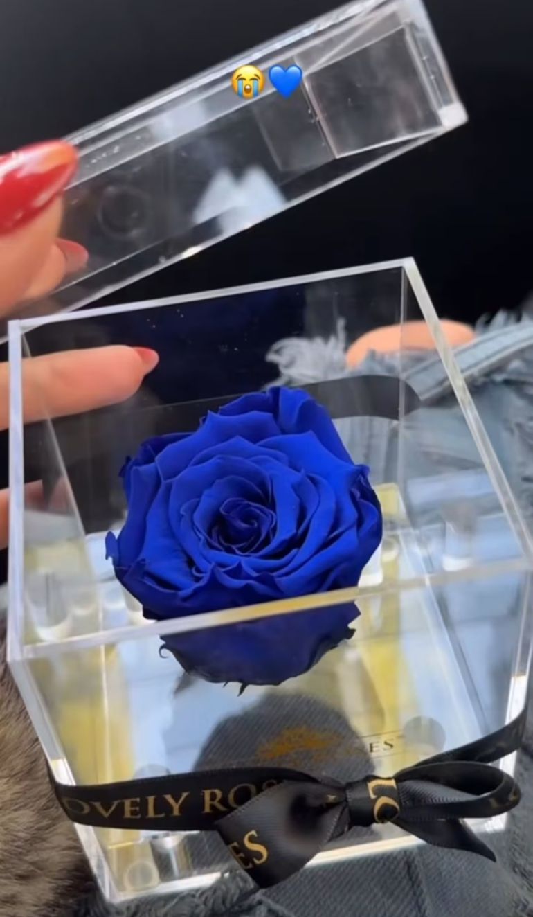 En las últimas horas, el cantante de cuarteto cordobés sorprendió a La Joaqui con un regalo que tiene un profundo significado romántico: una rosa eterna de color azul. Este tipo de flor es natural, pero pasa por un proceso de tratamiento para mantener su frescura y evitar que se marchite. Según se explicó, la rosa se corta en su momento más fresco y, luego, su savia es reemplazada por una solución especial de glicerina que garantiza su conservación a largo plazo. La flor, que simboliza el amor eterno y la belleza atemporal, se encuentra dentro de una elegante caja de acrílico, lo que la protege y resalta su significado.