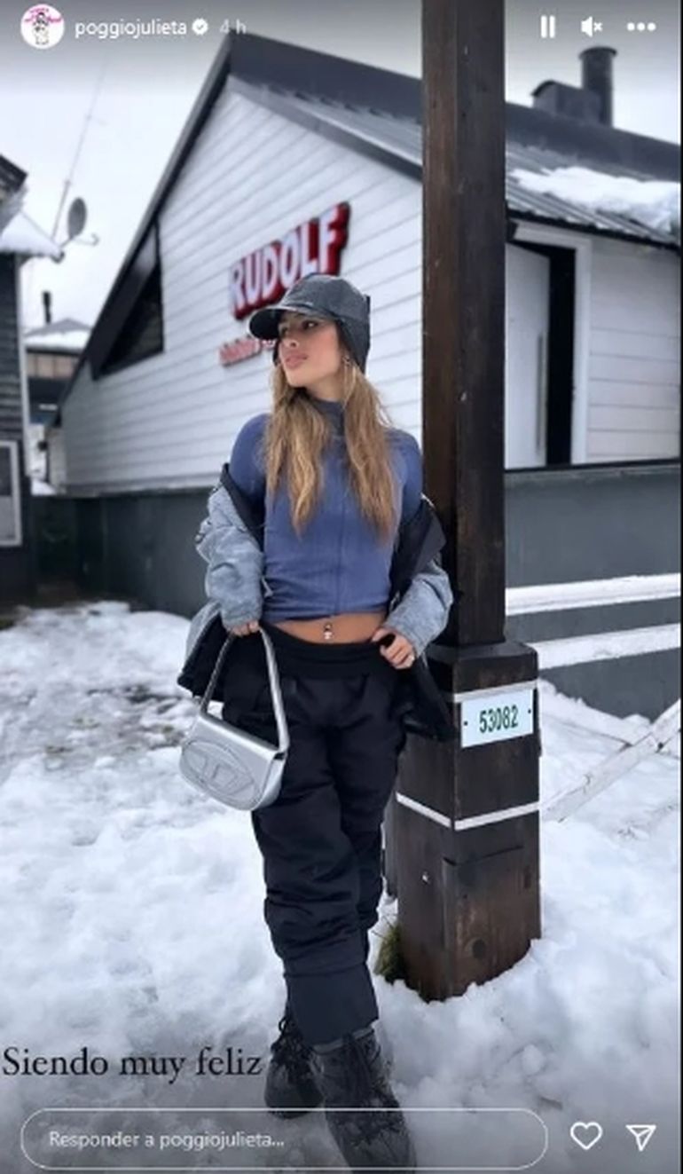 Con quien sí se mostró Julieta Poggio fue con su hermana Camila, que fue la persona con la cual viajó. Una vez en Bariloche, ambas visitaron la nieve y se animaron a hacer una mini guerra con bolas de esta. En este sentido, la influencer también aprovechó para posar para su cuenta de Instagram en donde confesó: “Siendo muy feliz”.