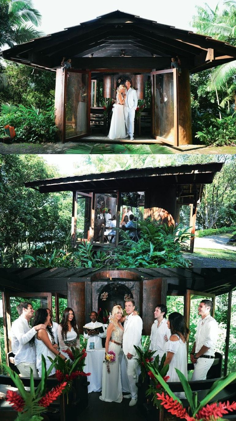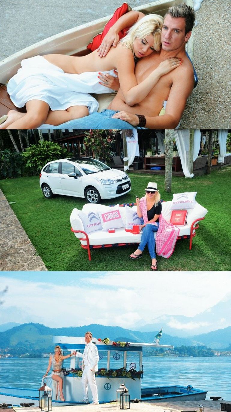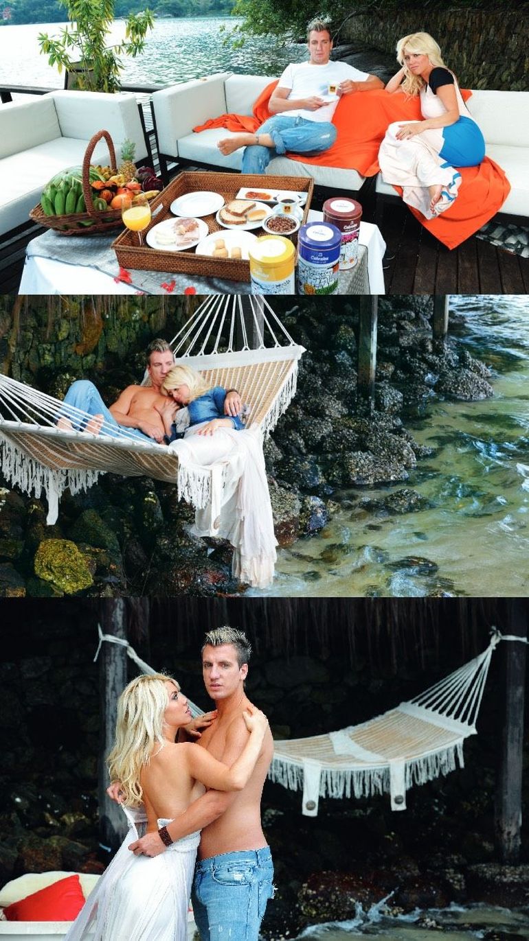 En primer lugar, la pareja fue invitada a una capilla de madera, donde renovaron sus votos y después, continuaron con la sesión en un puerto, donde había una embarcación rústica, decorada con símbolos de paz. Finalmente, hicieron unas fotos muy provocadoras de ambos descansando en una hamaca, en un bote y algunas cerca de la costa de la playa.