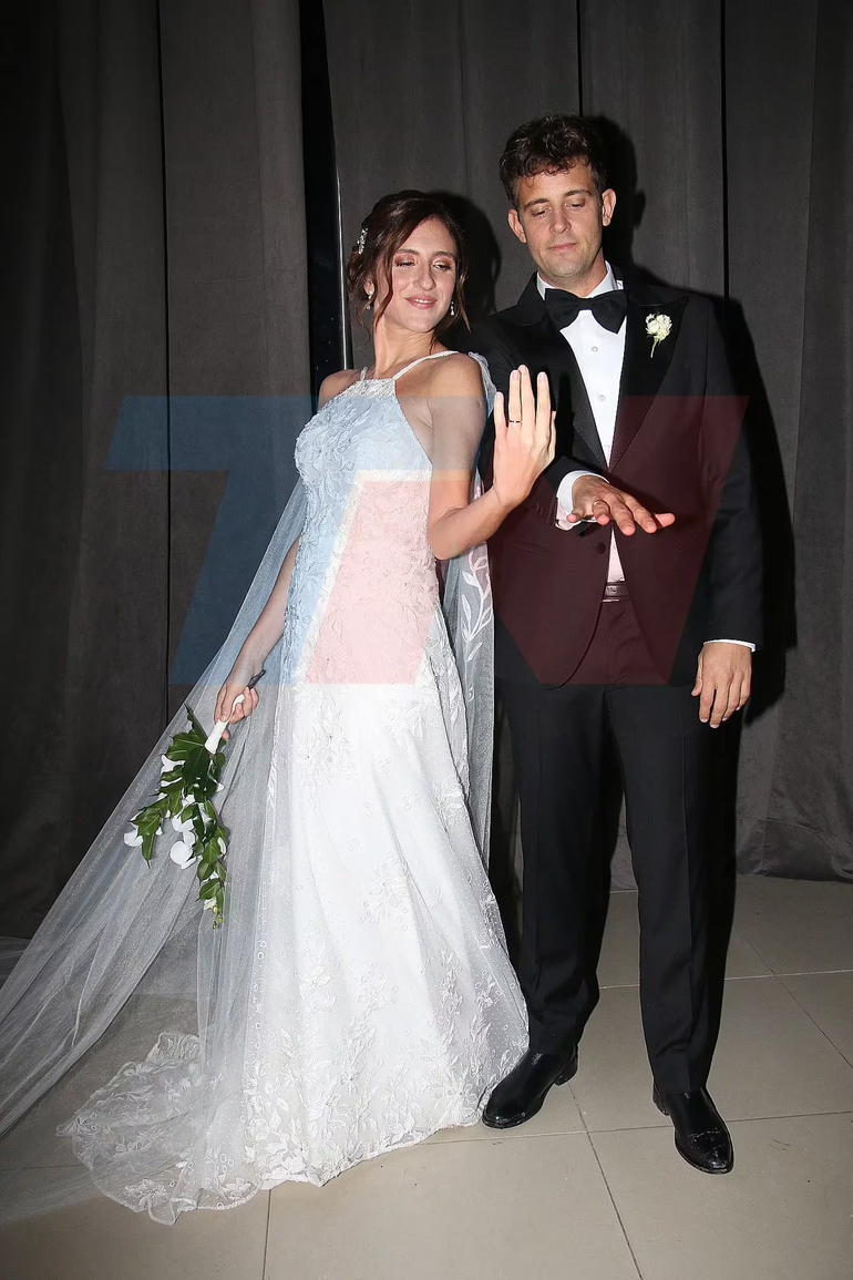 El vestido de novia también es muy especial, ya que el diseño fue realizado por Gabriel Lage. Luego de ver varias ideas junto a sus amigas, la periodista optó por un modelo que la atrapó desde el inicio: “Yo había mirado muchas referencias y mis amigas me habían mandado también, y a partir de algo que vi en el inicio de la búsqueda de referencias que mandó una de mis amigas, Agos, dije ‘bueno, me parece que es por acá’. Le mandé a Gabriel y él pensó algo muy propio”.