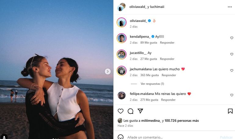 Ambas compartieron la publicación en Instagram con la opción de colaborar en la publicación. En la imagen publicada por ambas, se las ve disfrutando en la playa abrazadas y sonriendo. En los miles de comentarios que recibió la publicación se destaca el de Jacinta Maidana, hermana de Luchi, que escribió: "Las quiero mucho".
