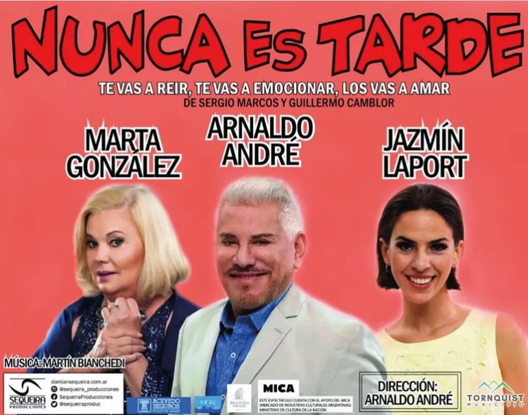 Nacido en San Bernardino, Paraguay, pero sin dudas adoptado por los argentinos, Arnaldo André disfruta del teatro a sus 79 años. Es que se encuentra realizando la obra Nunca es tarde, junto a Marta González y Jazmín Laport. Tras varios años en televisión retornó al lugar que en verdad lo apasiona.