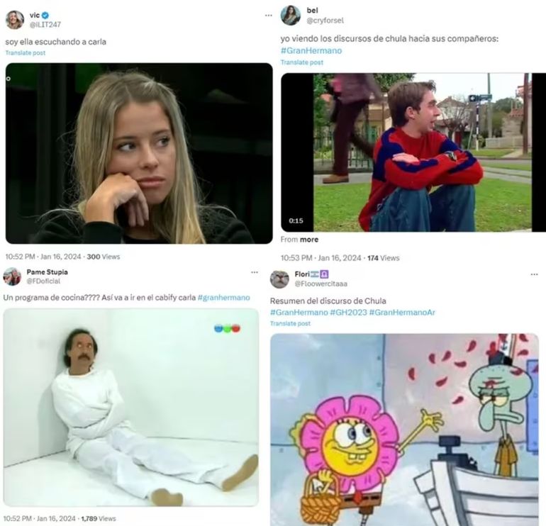 Los internautas no escatimaron en comentarios sarcásticos y memes, haciendo referencia a la supuesta hipocresía de Di Stéfano. "En qué momento Gran Hermano se convirtió en Casi Ángeles?", "Carla haciendo un monólogo halagando a todos y re que hoy al mediodía era esta", fueron algunos de los mensajes que circularon en las redes sociales. La mujer no escapó a la ola de críticas, con memes que ironizaban sobre su discurso y cuestionaban su autenticidad.