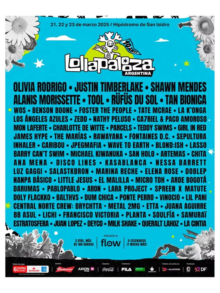 En 2025 el festival Lollapalooza cumple 10 años en Argentina y para celebrar ofrecerá shows con artistas de primer nivel internacional. El evento se llevará a cabo del 21 al 23 de marzo en el Hipódromo de San Isidro, así lo anunciaron este martes los organizadores.