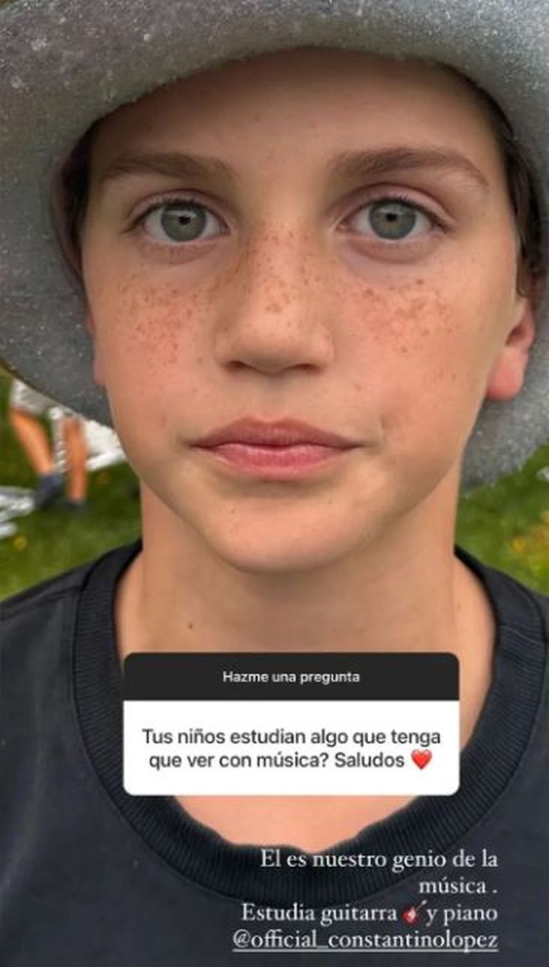 En respuesta a la pregunta de un seguidor sobre si sus hijos se dedican a la música, la empresaria compartió una revelación sorprendente: "Él es nuestro genio de la música", escribió junto a una foto de Constantino. Además, la mediática señaló que, a diferencia de sus otros hijos, el adolescente de 13 años ha optado por el arte y se sumergió en el estudio de la guitarra y el piano.