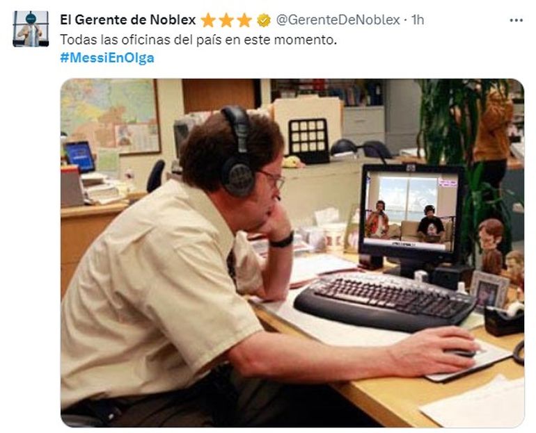 La esperada nota de Lionel Messi con Migue Granados en su canal de streaming OLGA fue, sin duda alguna, el gran tema de este jueves. Tendencia número 1 en las redes sociales, el hashtag #MessiEnOlga se llenó de comentarios, y sobre todo de memes. Es que más allá de lo interesante del contenido, lo cierto es que la nota salió en el horario habitual del programa, que va de 10 a 13. Y esa franja suele entrar dentro del horario laboral... que no parece haber sido muy respetado.