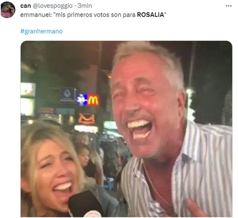 “Mis primeros dos votos van a ser para Rosalía”, expresó Emmanuel, desconcertando al Gran Hermano. Ante la insistencia del participante, el conductor del programa aclaró que no existía nadie con ese nombre. Finalmente, Emmanuel rectificó su error al ver la foto de Rosina en la pantalla y pronunció correctamente su nombre. Sin embargo, los memes ya se habían apoderado de las redes.