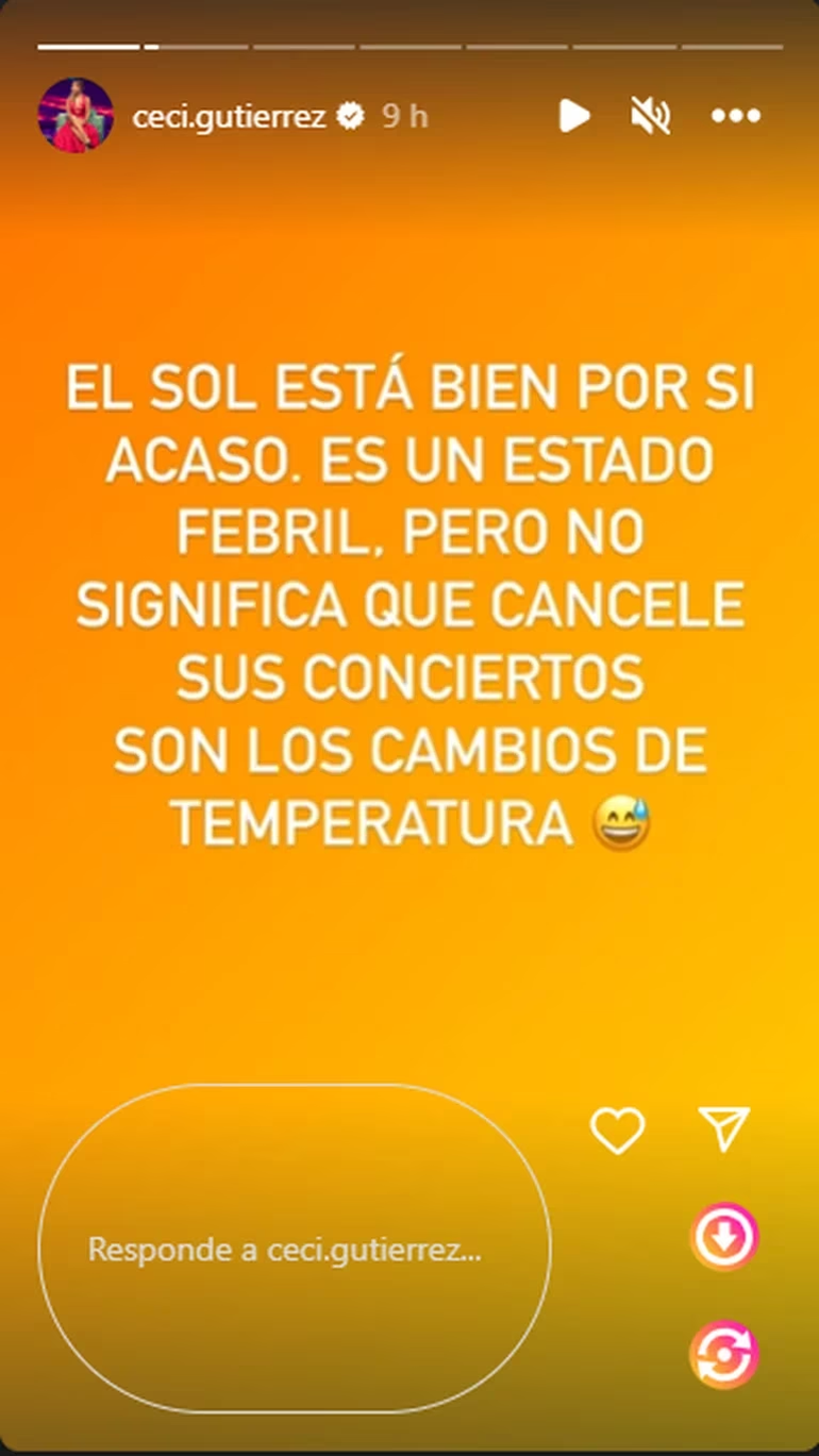 Ante la preocupación expresada por los fanáticos, aclaró que "es un estado febril, pero no significa que cancele sus conciertos. Son los cambios de temperatura".
