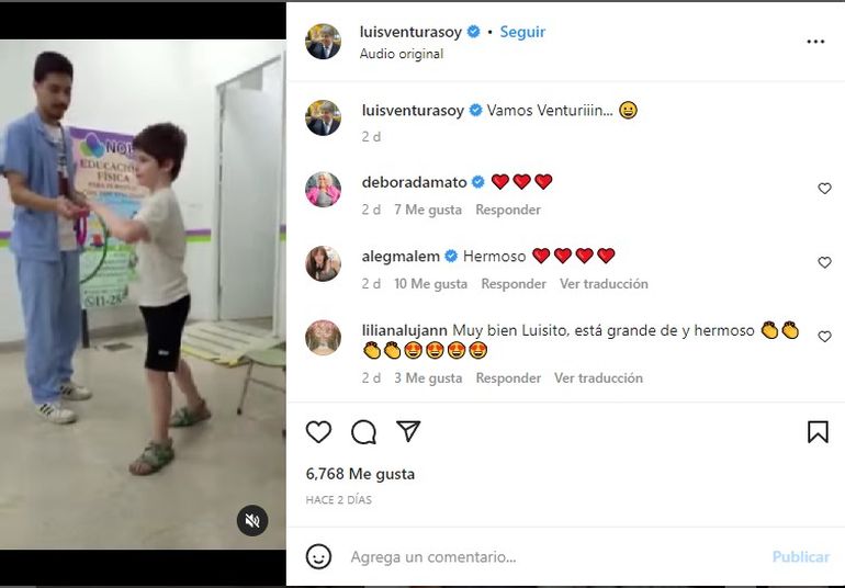 De esta manera, Luis Ventura volvió a mostrar cómo es la lucha en la cual acompaña a su hijo. Él se muestra orgulloso de los avances que tiene y expone su alegría mediante las redes sociales: “Vamos Venturiiiin”.