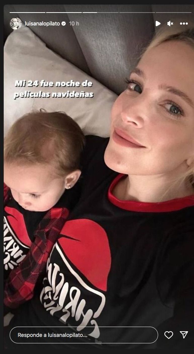 Luisana Lopilato publicó una foto donde indica: “Mi 24 fue noche de películas navideñas”. En la historia de Instagram aparece también Cielo Bublé, quien estaba totalmente concentrada en el filme de la pantalla. Lo que impactó fue ver sus pestañas tan largas y similares a las de su mamá, en adición al mismo color de pelo que luce la argentina.