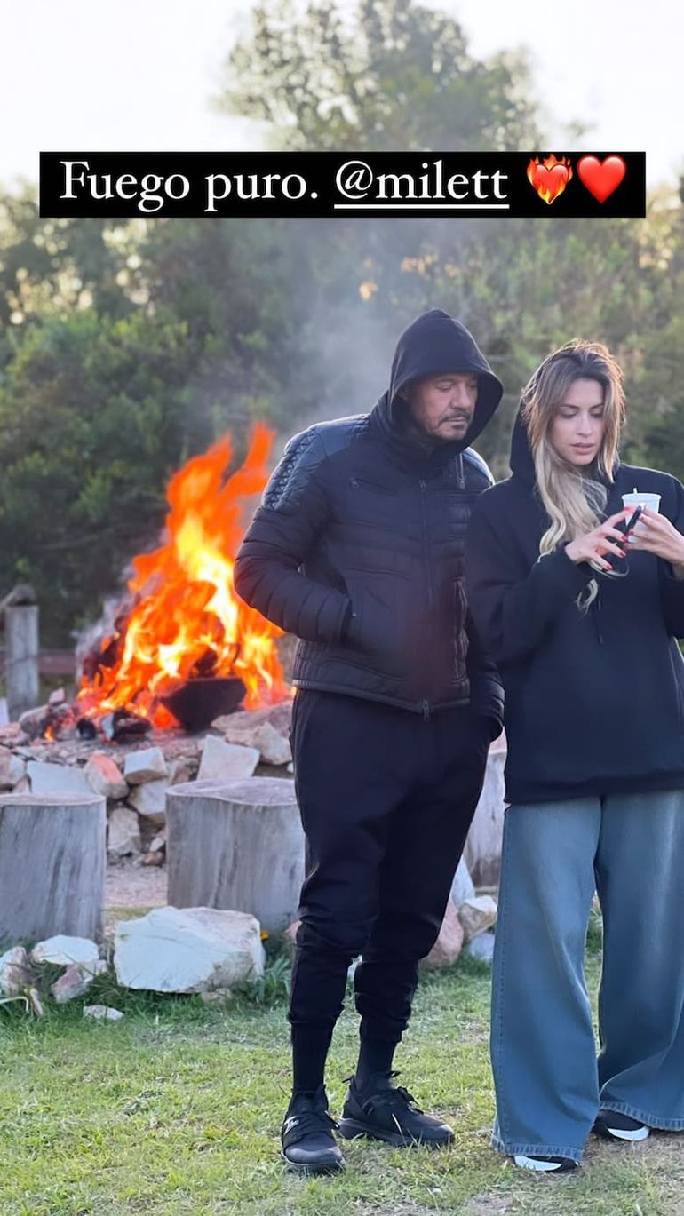Tinelli también se hizo presente en sus historias y en primer lugar, compartió una foto con su hija Cande en una cabalgata, pero también le deseó el mejor de los cumpleaños a su primo, El Tirri, que estaba con ellos. Para finalizar, sumó una foto con Milett y unas especiales palabras en su día de campo: “Fuego puro”.