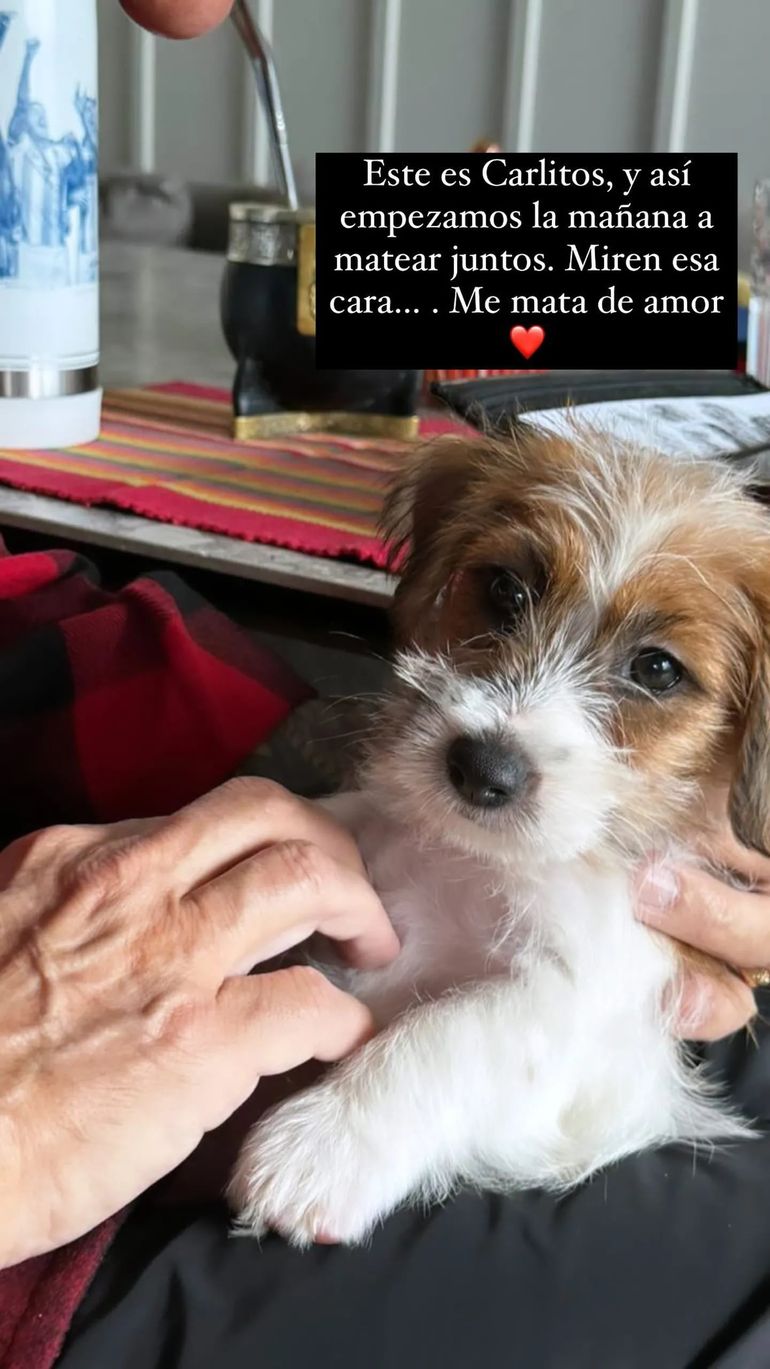 El conductor continuó dejando el detalle de su tiempo con el perrito y, tras pasar la noche juntos, el periodista reveló que la mascota conquistó su corazón con sus gestos dulces. “Este es Carlitos y así empezamos la mañana, a matear juntos. Miren esa cara... Me mata de amor”, reconoció Marcelo con un emoji de un corazón y una foto de él sosteniendo a Carlitos en su falda.