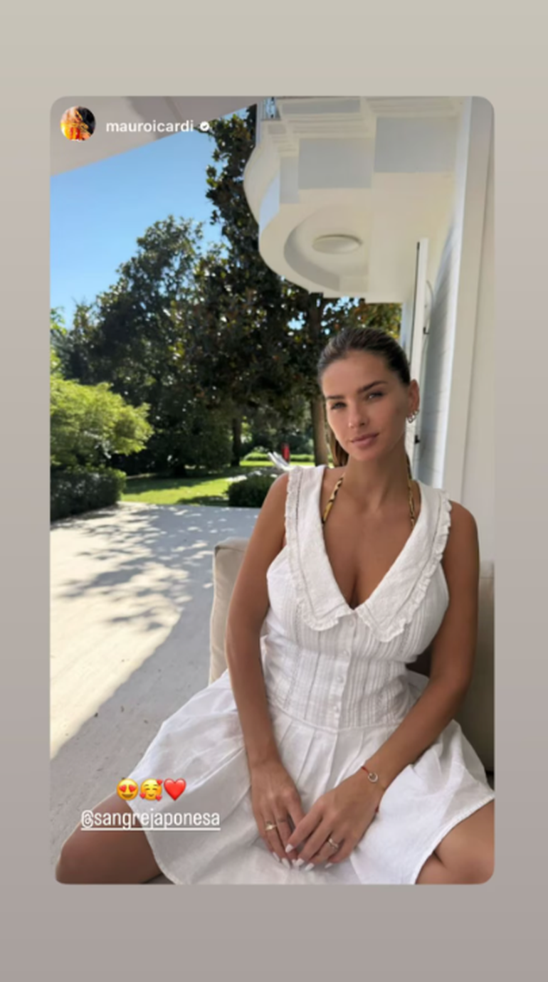 La mudanza quedó registrada en el terreno que más manejan: sus redes sociales. Allí, Icardi publicó primero una foto en el campo de entrenamiento, pero rápidamente giró el foco hacia lo personal con una postal íntima: retrató a la China descansando bajo el sol del verano europeo. En la imagen, Suárez aparece con un vestido blanco de escote en V, cuello bobo con volados, falda con tablas y los breteles finos de una microbikini animal print en tonos naranjas y negros. El look, uno de los más comentados de la temporada, fue completado con un peinado recogido en cola de caballo tirante y un maquillaje minimalista, con máscara de pestañas, rubor en las mejillas y labios al natural.