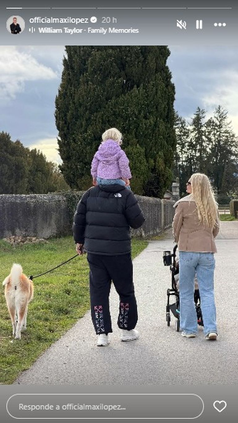 Ya más tranquilo con los compromisos laborales, Maxi volvió al país europeo para compartir tiempo con su familia luego del nacimiento de su hijo Lando. A través de sus redes sociales López compartió una foto que enterneció a todos sus seguidores: caminando de espalda junto a su pareja, llevando en sus hombros a su hija Elle mientras que Daniela trasladó el carrito de Lando.