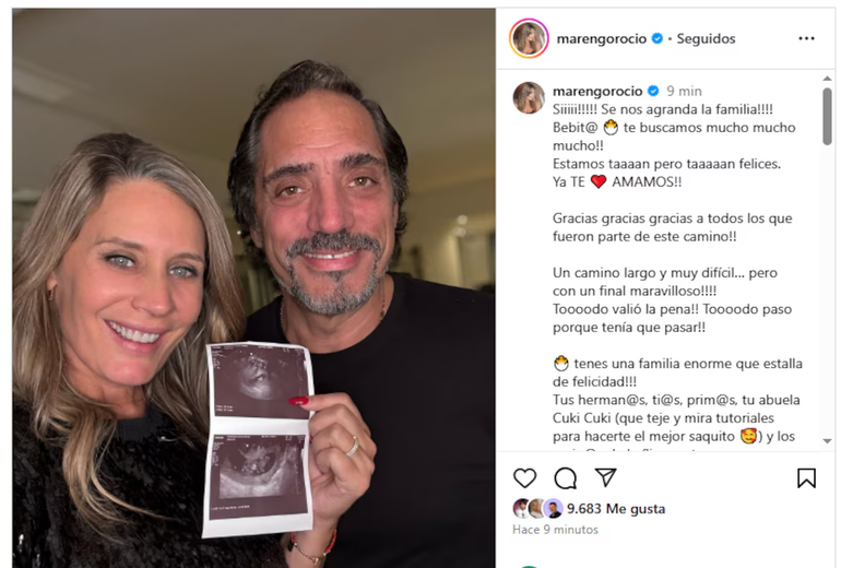 Previamente, la pareja fue mostrando diferentes momentos de este proceso, él siempre con un perfil más reservado y ella mucho más acostumbrada al juego mediático, como cuando habló durante la fiesta en la que revelaron que esperaban un varón. “Es emocionante porque se me vienen a la cabeza un montón de recuerdos de este camino que no fue fácil, pero que hoy lo podemos disfrutar. Y es muy lindo ver a los chicos de Edu, la familia se ensambló de una manera que este bebé viene a traer alegría y unión”, comentó Marengo, al intentar explicar los sentimientos que la abordaban en ese instante.