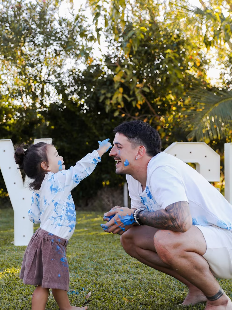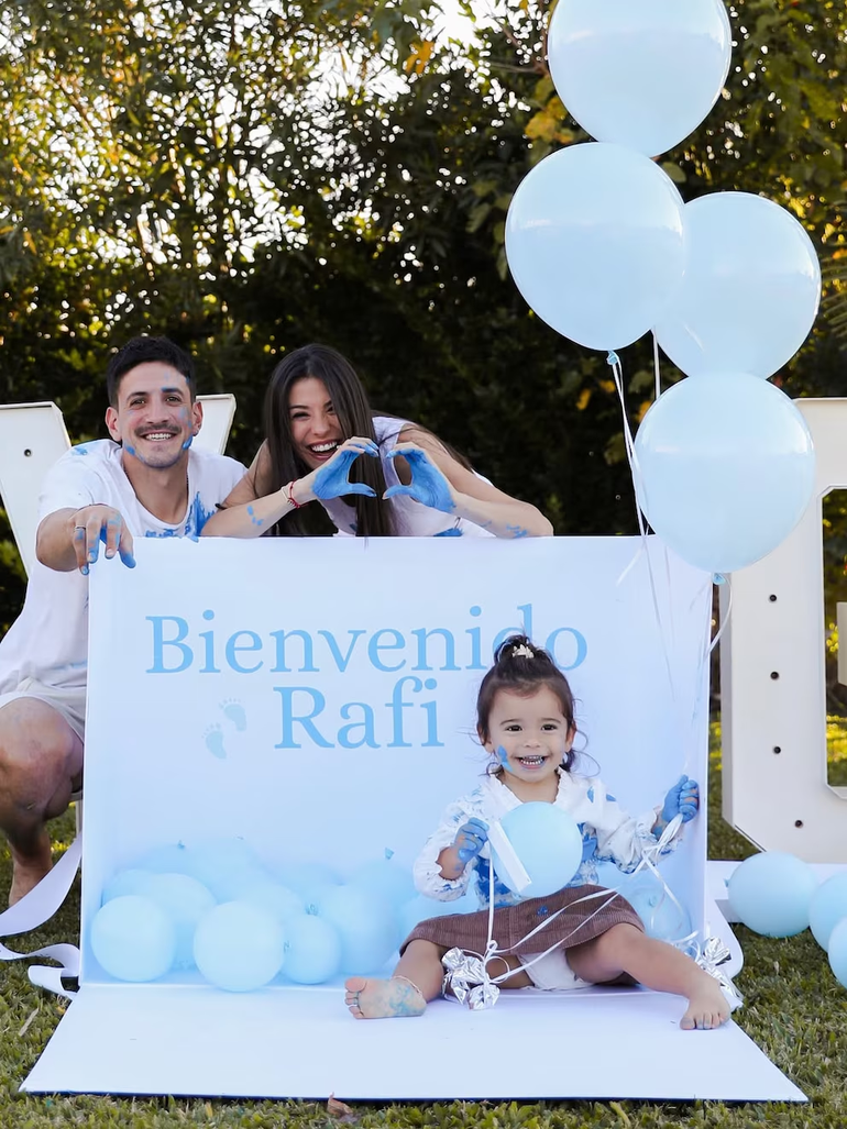 Días más tarde, en un video compartido en sus redes sociales, la pareja optó por un gesto familiar para confirmar el sexo del bebé: con las manos cubiertas de pintura y las remeras blancas como lienzo, India, su hija de casi dos años, participó de un juego en el jardín de su casa. La secuencia comenzó en blanco y negro. Solo hacia el final, el video recuperó el color y dejó ver el celeste en las palmas de los tres, revelando así que el nuevo integrante será un varón.
