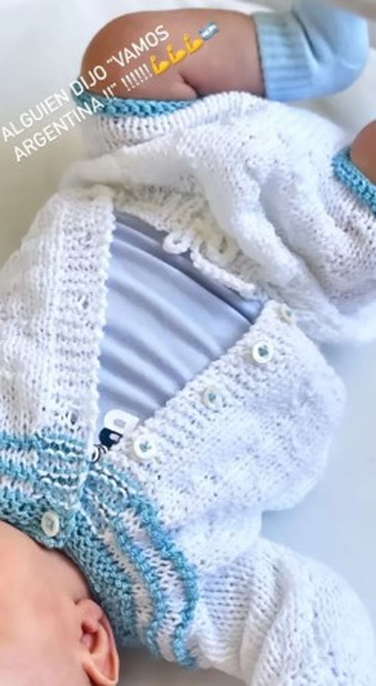 Esta semana por ejemplo, aprovechando las bajas temperaturas de Buenos Aires, Nicole le probó un conjuntito de lana tejido especialmente para su hijo por una persona muy especial. Cruz lució un conjunto de dos piezas en blanco y celeste que combinó con medias y camisetita a tono, por lo que quedó listo para alentar a la Selección Argentina en la final de la Copa América que se disputará este domingo a la noche.